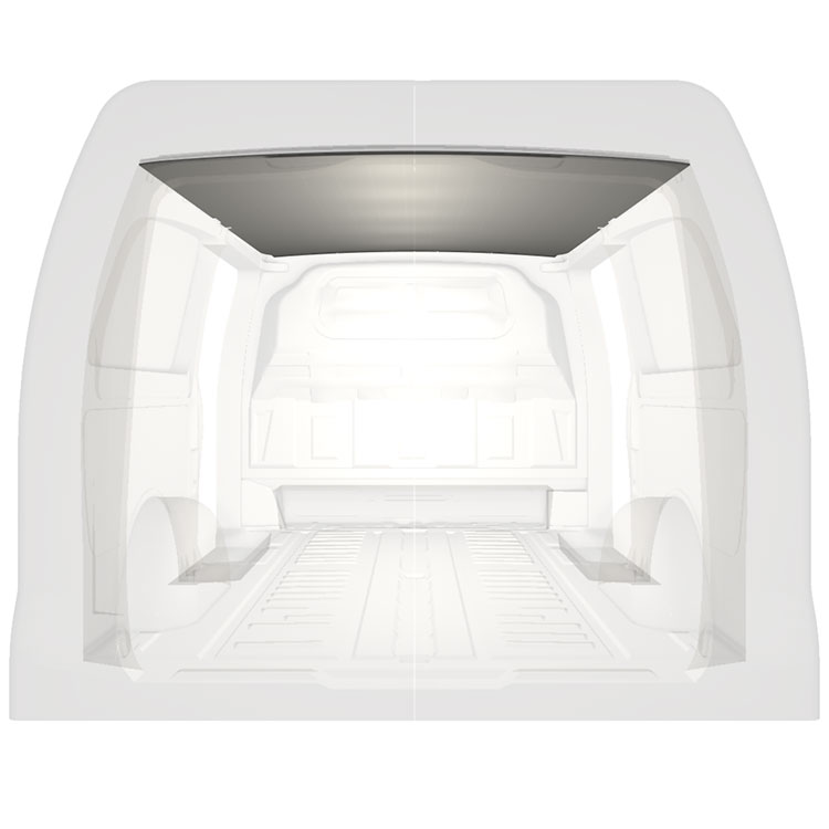 Revêtement léger pour toit d’une Mercedes Vito. Le revêtement de toit créera une finition de travail lumineuse à l'intérieur et un environnement professionnel convivial.