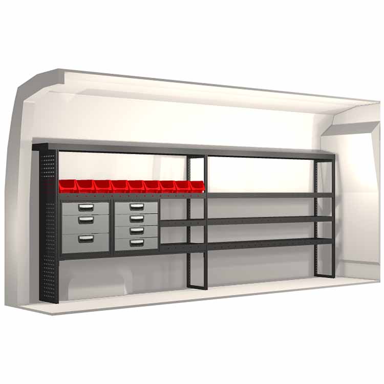 Ce système d’aménagement a été spécialement conçu pour assurer une adaptation optimale ainsi que la meilleure fonctionnalité et sécurité possible. Il a été développé pour un usage professionnel, est flexible et est destiné à des métiers de services dans des domaines variés. Toutes les étagères sont équipées de tapis caoutchouc, et tous les tiroirs de tapis mousse. Les composants d’assemblage et de fixation sont inclus.