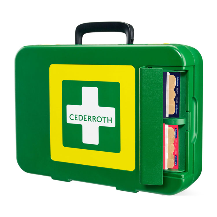 Le kit Cederroth First Aid modèle X-Large est une mallette de Premiers Secours robuste et bien équipée, réalisée dans un plastique rigide pour protéger le contenu de la poussière, de l’humidité et de la saleté, même dans les environnements extrêmes. Le distributeur de pansements placé sur l’extérieur permet de prendre facilement un pansement sans déranger ni salir le contenu du kit.