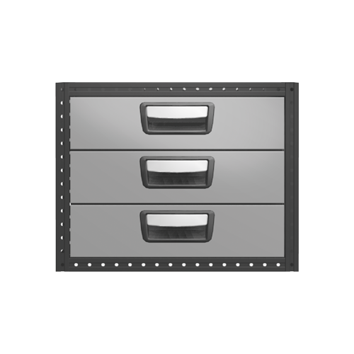 Chaque tiroir est équipé en version standard de glissières sur roulements à billes et sa charge maximale est de 30 kg, tandis que la charge totale par bloc est de 100 kg. Les tiroirs peuvent être ouverts à fond et sont équipés d'arrêtoirs. Pour une utilité maximum, le bloc-tiroirs peut être équipé d'accessoires tels que fond en mousse, séparations et casiers en plastique. Afin d'optimiser le poids, des tôles de fermeture acier et des panoplies sont disponibles en option.