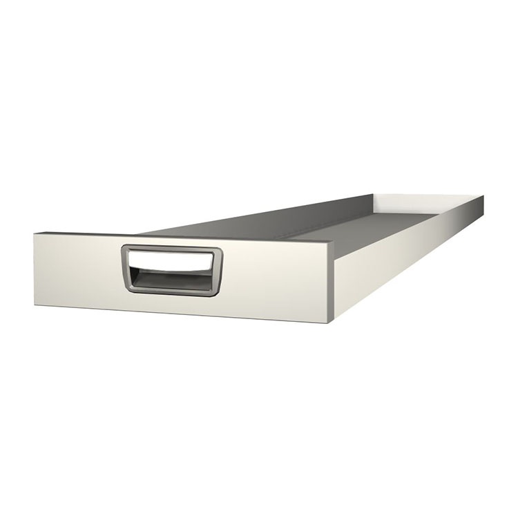 Tiroir extra-long robuste à monter dans une structure de bloc-tiroirs. Le tiroir en aluminium possède des roulements à billes en standard et la combinaison de roulements fixes et flexibles rend le tiroir stable et facile à utiliser.