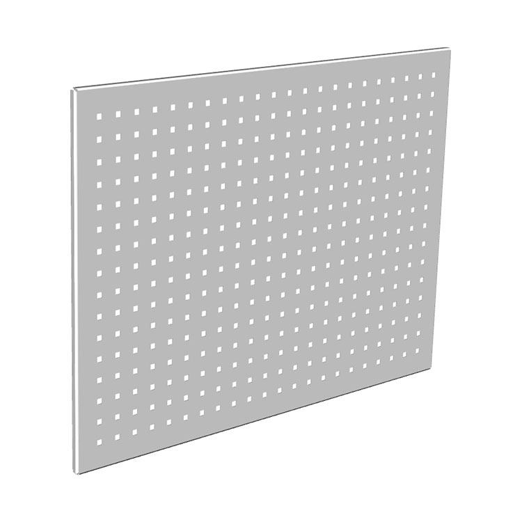 La panoplie est conçue pour être accrochée à la paroi. La plaque en métal est percée de trous de 9 mm distants de 34 mm. L'ajout de crochets à outils permet de disposer d'un système flexible pour accrocher les outils, etc.
