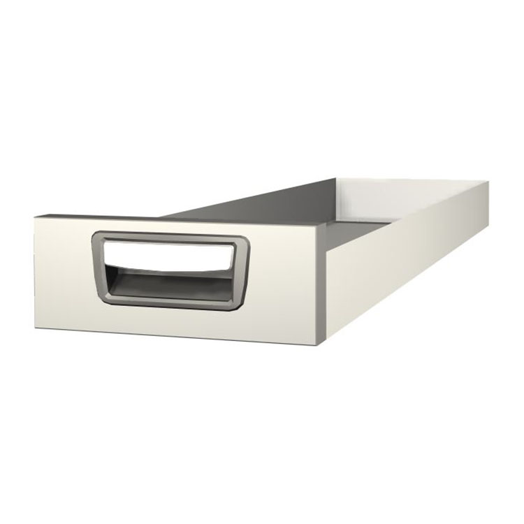 Tiroir extra-long robuste à monter dans une structure de bloc-tiroirs. Le tiroir en aluminium possède des roulements à billes en standard et la combinaison de roulements fixes et flexibles rend le tiroir stable et facile à utiliser.