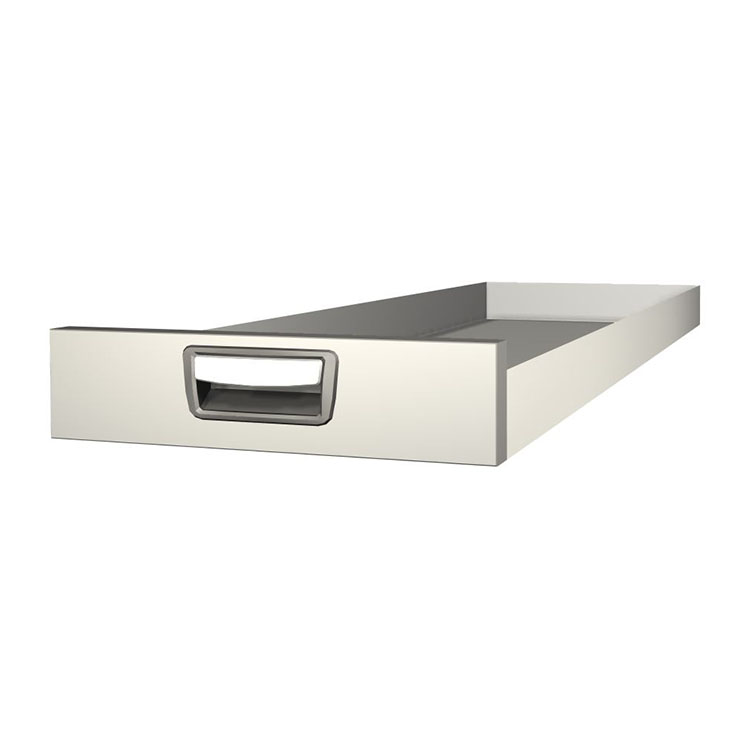 Tiroir extra-long robuste à monter dans une structure de bloc-tiroirs. Le tiroir en aluminium possède des roulements à billes en standard et la combinaison de roulements fixes et flexibles rend le tiroir stable et facile à utiliser.