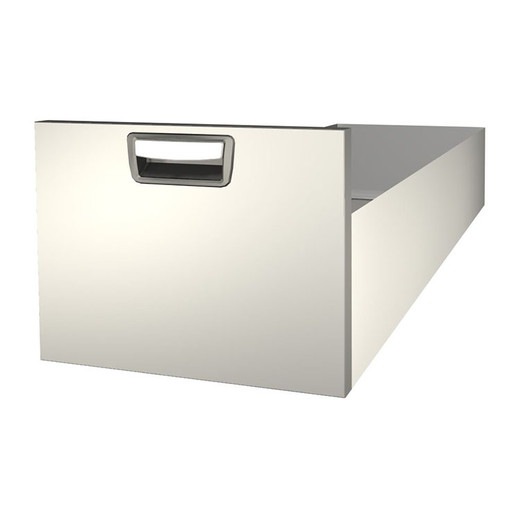 Tiroir extra-long robuste à monter dans une structure de bloc-tiroirs. Le tiroir en aluminium possède des roulements à billes en standard et la combinaison de roulements fixes et flexibles rend le tiroir stable et facile à utiliser.