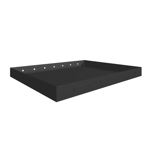 Nos étagères ont une hauteur de 54 mm et la rive laminée sur les bords longs (en instance de brevet) ajoutent de la rigidité à la construction. Les encoches à l'avant et à l'arrière sont destinées à la fixation des séparations. Pour un usage optimal, les étagères peuvent être équipées de bacs modulaires et de tapis en caoutchouc. Capacité de charge 120 kg.