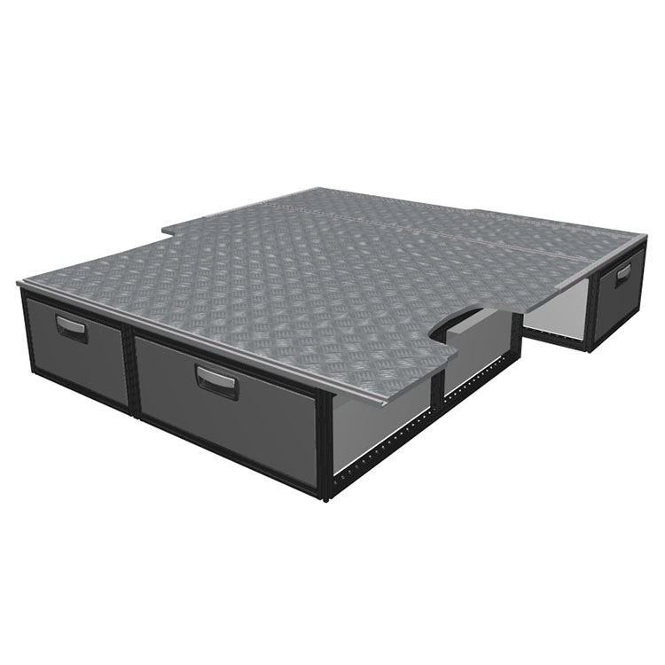 The kit is designed to be fitted on top of a wooden floor. The double floor is equipped with rails for easy installation of vehicle racking, and edging strips for a nice finish.