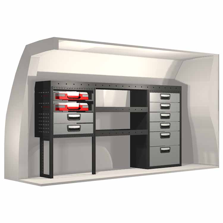 Ce système d’aménagement a été spécialement conçu pour assurer une adaptation optimale ainsi que la meilleure fonctionnalité et sécurité possible. Il a été développé pour un usage professionnel, est flexible et est destiné à des métiers de services dans des domaines variés. Toutes les étagères sont équipées de tapis caoutchouc, et tous les tiroirs de tapis mousse. Les composants d’assemblage et de fixation sont inclus.