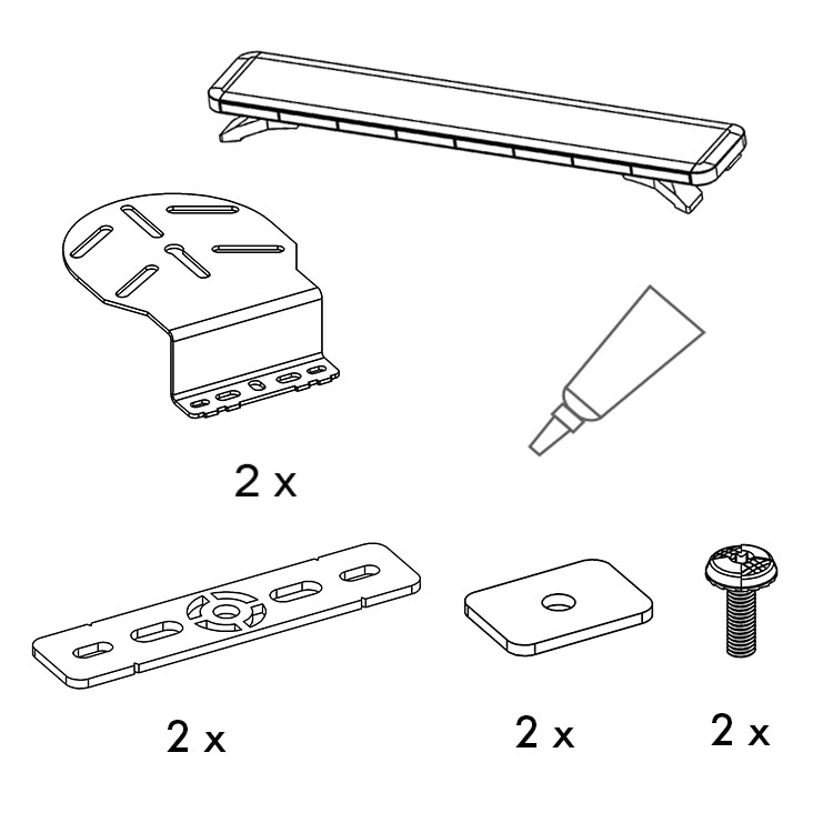 Kit comprenant un éclairage sur barre et un ensemble complet de supports pour une installation directe sur les points de fixation OEM du véhicule. En utilisant les points de fixation intégrés, aucun perçage inutile ne doit être effectué sur la carrosserie du véhicule, éliminant ainsi le risque de corrosion et protégeant la valeur résiduelle du véhicule.